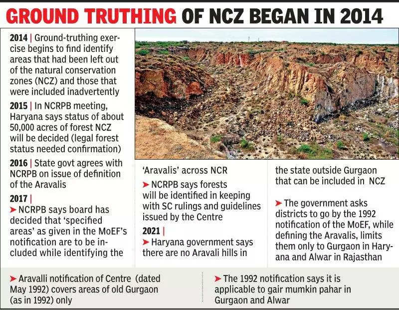 1) Withdraw the decision to identify areas under Aravallis on the basis of the 1992 notification of the Union Ministry of Environment, Forest and Climate Change (MoEFCC) taken in a meeting held in August 2021 for “Ground-Truthing of Natural Conservation Zone (NCZ)” in the Haryana sub-region of the National Capital Region.