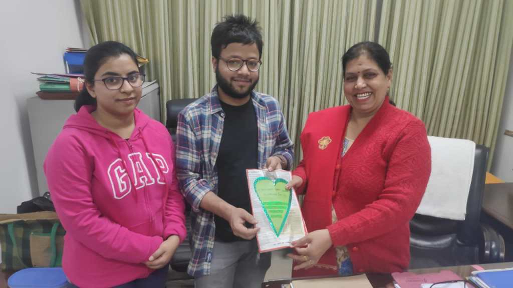 On Valentine’s Day, 14th February 2020, college students from Delhi accompanied by a few adults from Gurgaon went to the Haryana Bhawan in New Delhi with a card and petition letter addressed to Mr. Manohar Lal Khattar, the Chief Minister of Haryana. The Valentine’s Day card made out of recycled newspaper in the shape of a green heart with a few leaves and twigs pasted inside to represent the Aravalli forest was given to the officiating Resident Commissioner for the Chief Minister of Haryana by the students. The card said, “Respected Chief Minister, A very Happy Last Green Valentine’s Day! Please don’t destroy our Aravallis. The future of your family as well as ours is in grave danger. We don’t need development at the cost of our trees. Please save our Aravalli forests!”