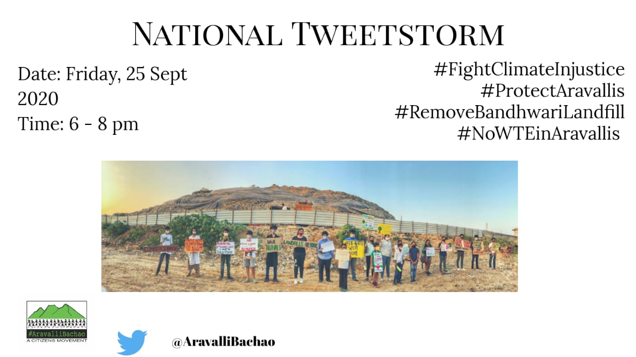 Citizens from India’s National Capital Region and forest, environment and climate action groups across India participated in these tweetstorms to raise demands for saving the Aravallis. Hashtags like #AravalliBachao #SaveOurAravallis #WithdrawPLPAamendment #RemoveBandhwariLandfill #EnforceSWMRules #NoWTEinAravallis were used.